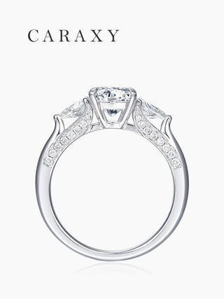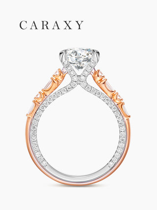 CARAXY Lab-Created Three-Life Diamond Ring | 18K Gold Inspired Halo Engagement Ring with Nature’s Poetry. AR012-W