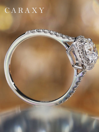 CARAXY Lab-Created 1 Carat Women's 18K White Gold Halo Diamond Ring | Custom Loose Diamond Engagement Ring. AR011-W