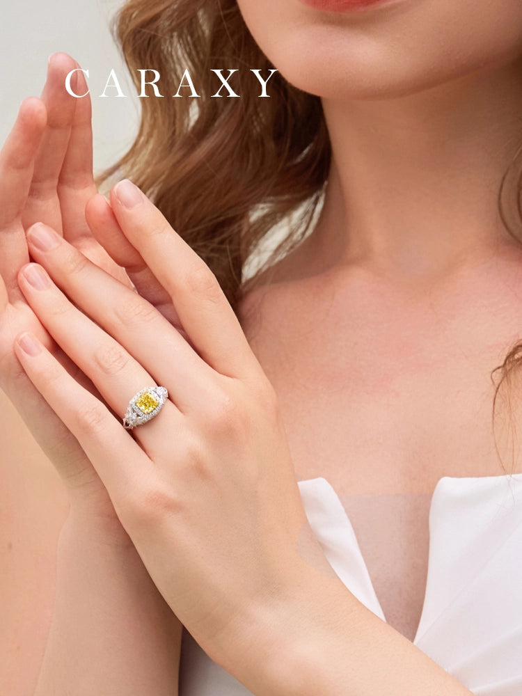 1.5ct Yellow Diamond Engagement Ring - Cushion Cut Diamond