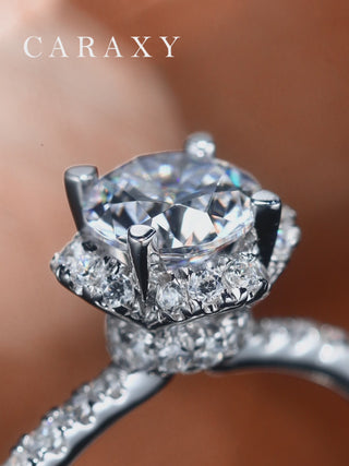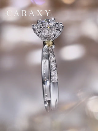 CARAXY Four Prong Flower Cluster Lab Cultured Diamond Ring AJ203