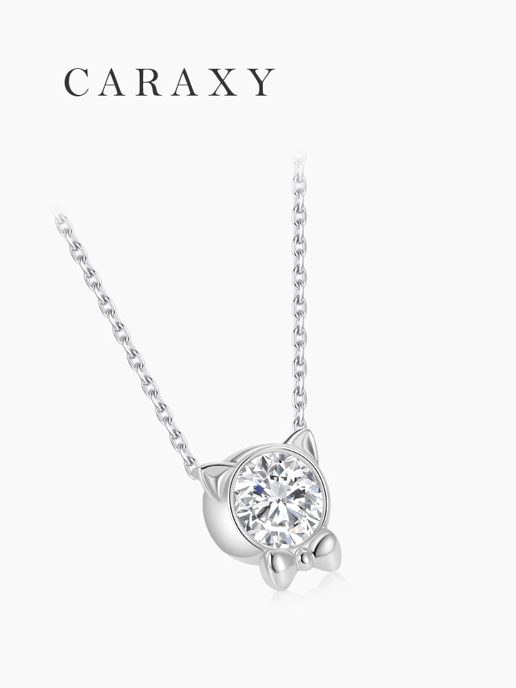 Cat Necklace in 18k White Gold - Cat Jewelry | CARAXY