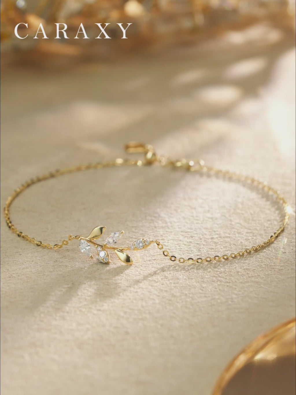 • Exquisite Leaf Design: This dainty olive leaf jewelry for women showcases alternating polished gold leaves and sparkling marquise-cut lab diamonds, creating a fluid, organic silhouette.
