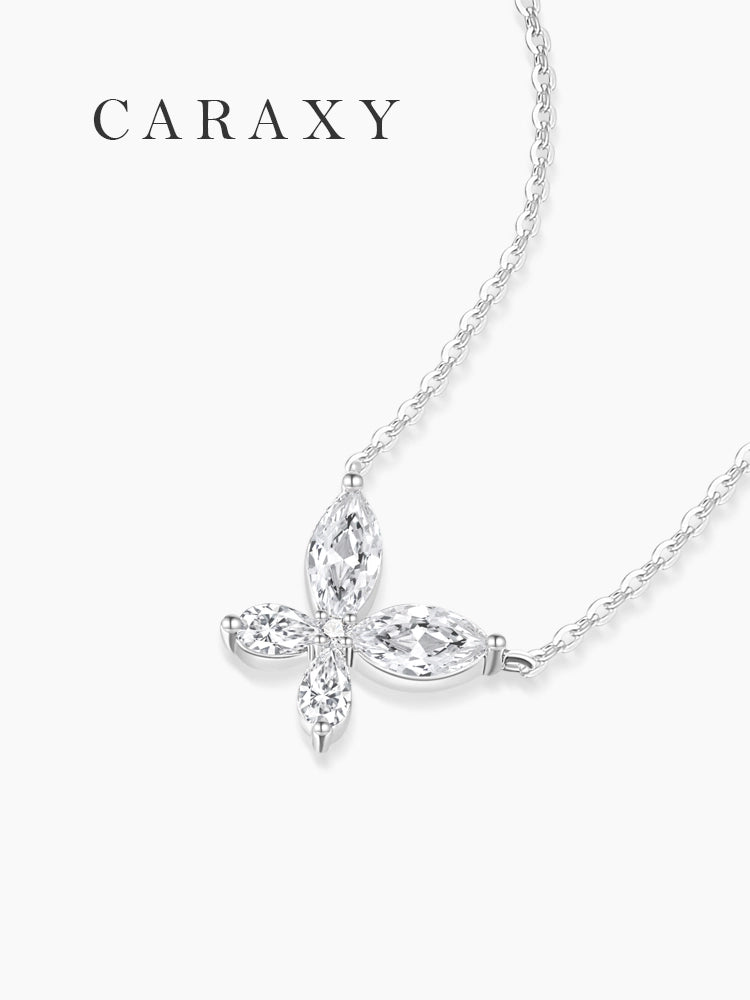 Embrace soft elegance with our Pear Cut Butterfly Diamond Necklace, crafted in solid 18K white gold and set with four sparkling lab-grown diamonds. Each pear and round brilliant cut stone forms a delicate butterfly silhouette, symbolizing lightness, renewal, and effortless beauty.