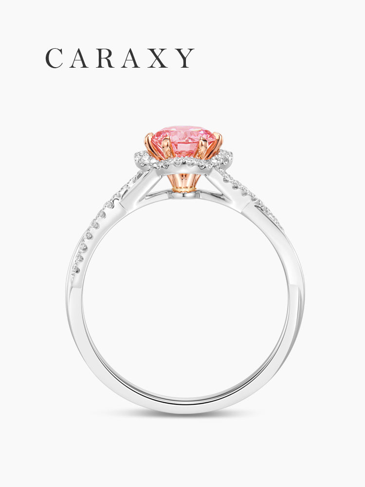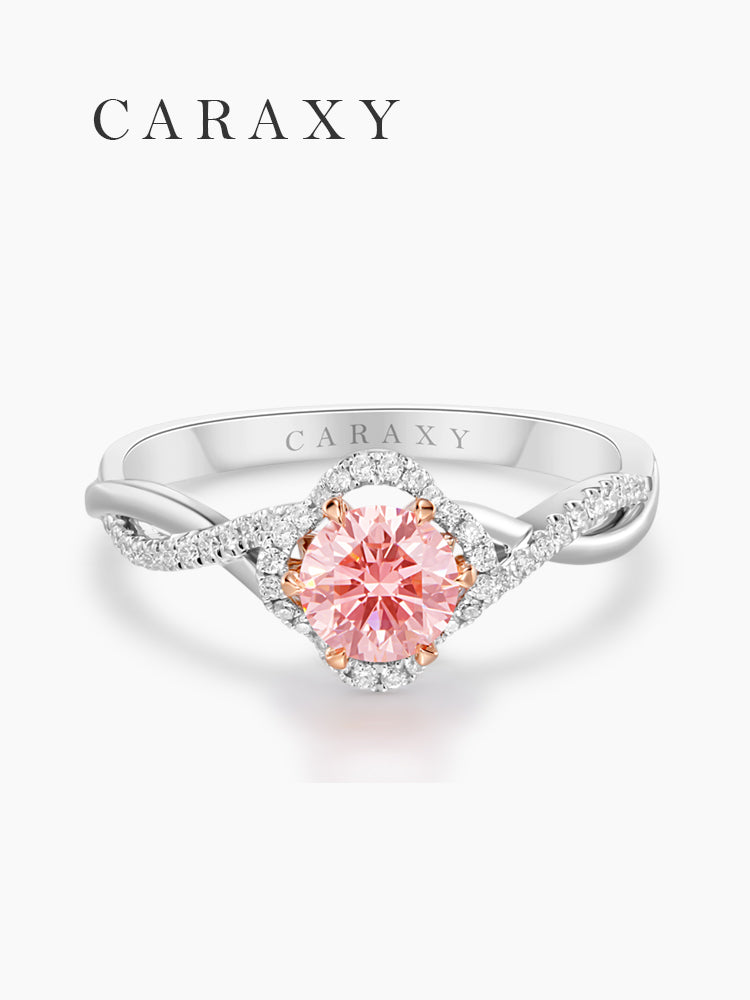 Celebrate love with a ring that feels as meaningful as the moment itself. This round pink lab-grown diamond engagement ring is designed to capture emotion through every detail—from its soft floral halo to the graceful twisted pavé band.