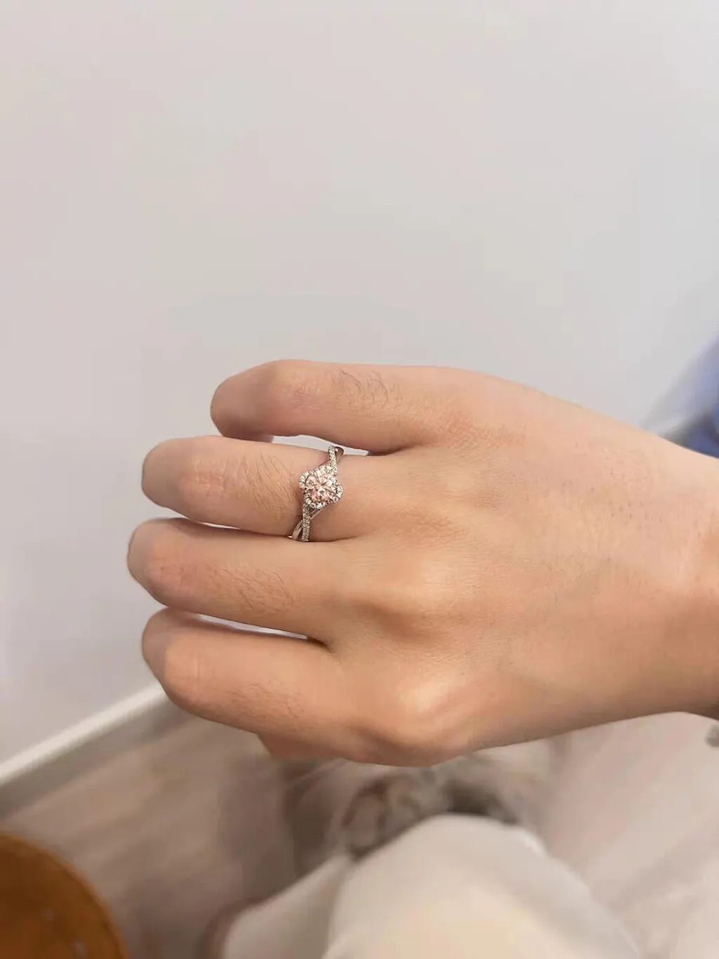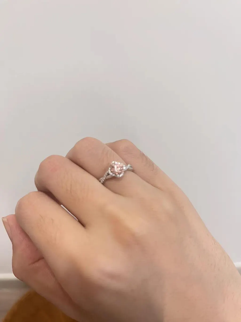 Delicate yet distinctive, the blush-toned center stone symbolizes romance and individuality, making it a perfect choice for proposals, anniversaries, or Valentine’s Day.