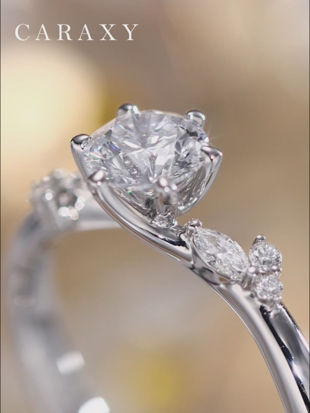 Drawing inspiration from graceful leaves swaying in nature, this engagement ring features a round brilliant lab grown diamond embraced by marquise and round side stones shaped like delicate leaves. The flowing band curves gently toward the center stone, creating a natural, organic silhouette that symbolizes growth, harmony, and everlasting connection.