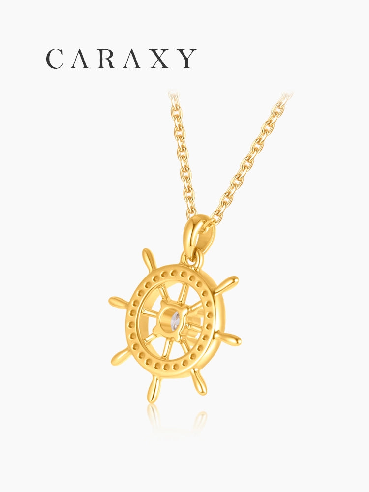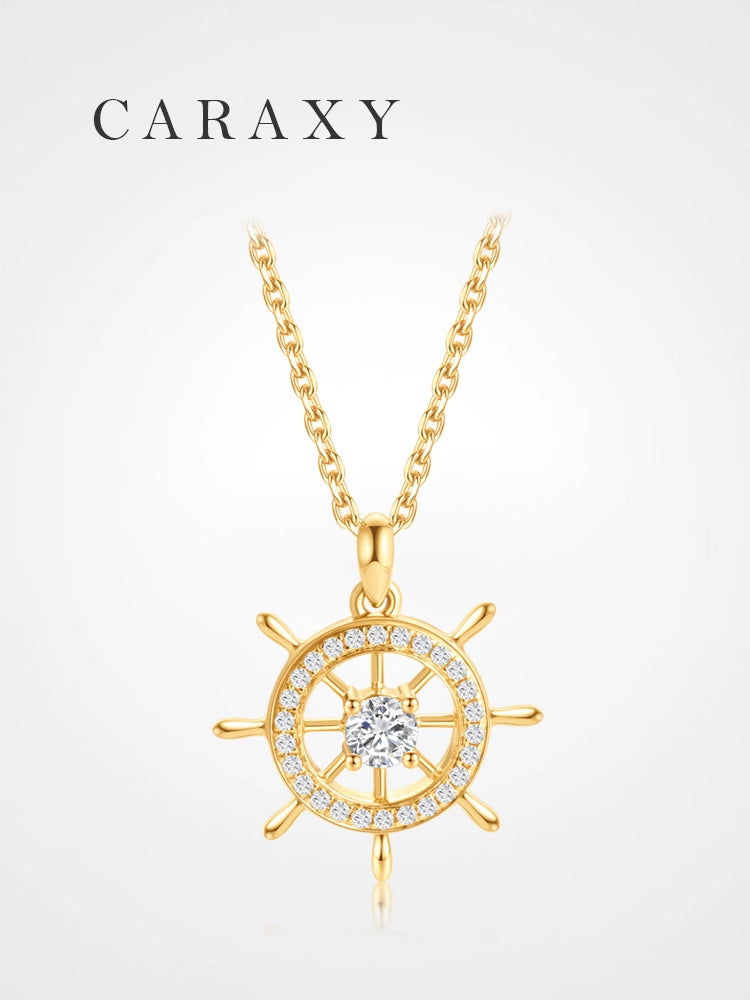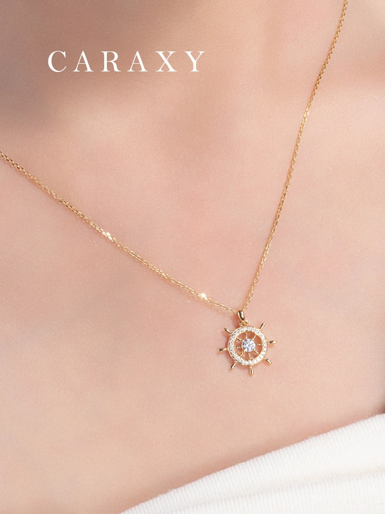 Set your style on a new course with this 18K gold ship wheel lab grown diamond pendant necklace. Inspired by a classic helm wheel, the design symbolizes direction, guidance, and the courage to steer your own journey.