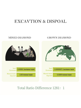 According to a 2014 environmental impact assessment study by Frost & Sullivan Research, lab-grown diamonds have only 1/7 of the environmental impact compared to mined diamonds.